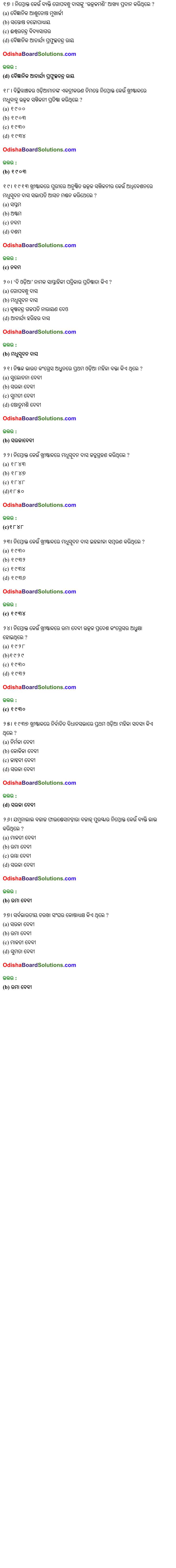 CHSE Odisha class 12 History Chapter 16 MCQs