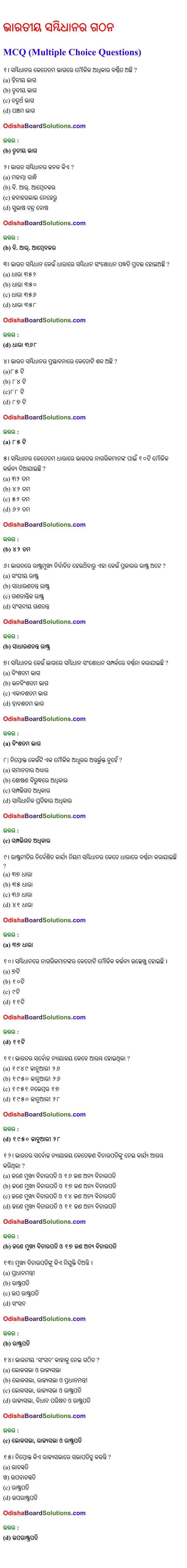 CHSE Odisha class 12 History Chapter 17 MCQs
