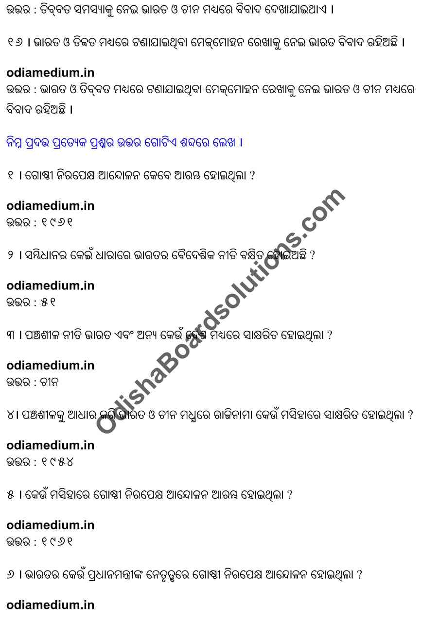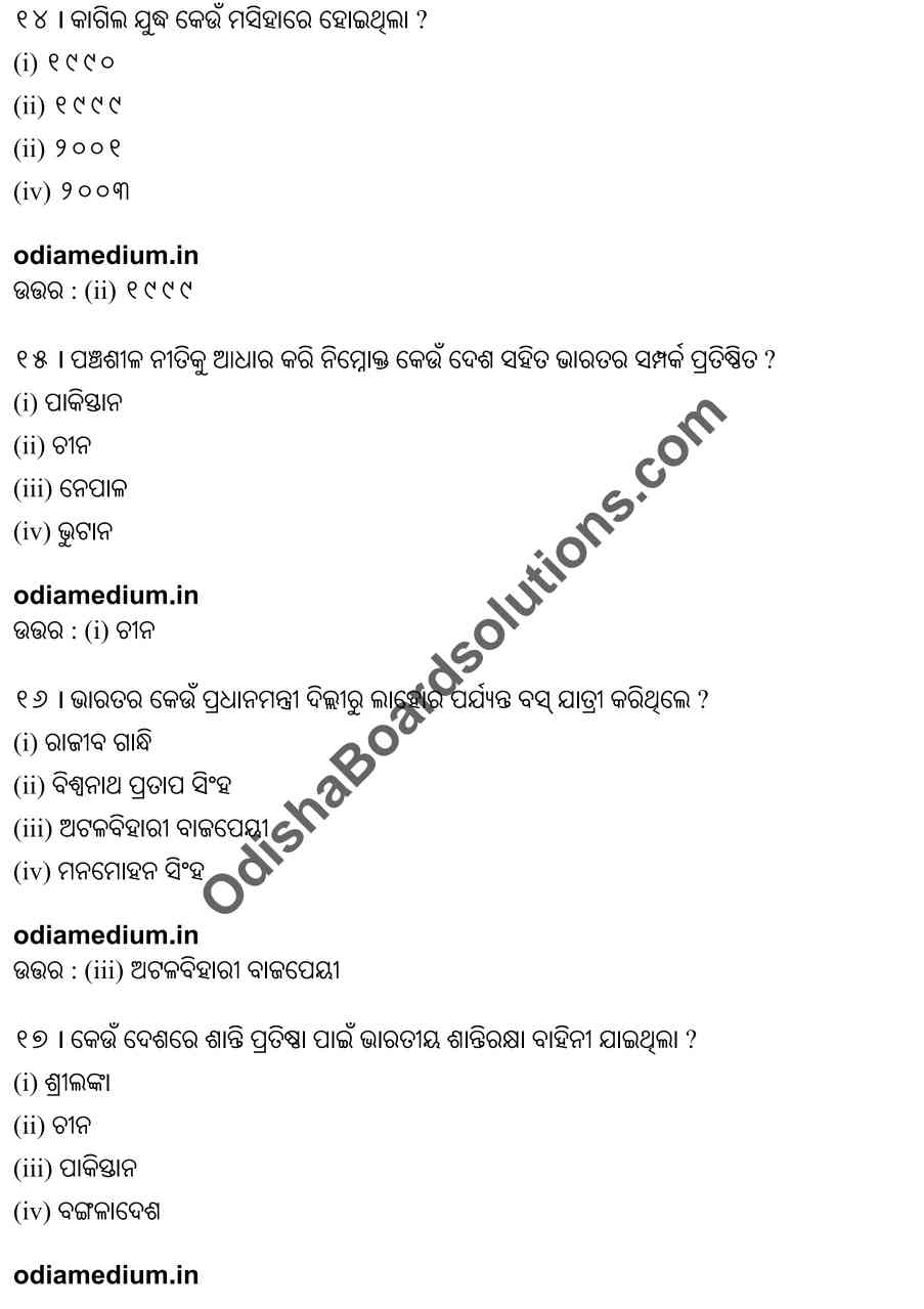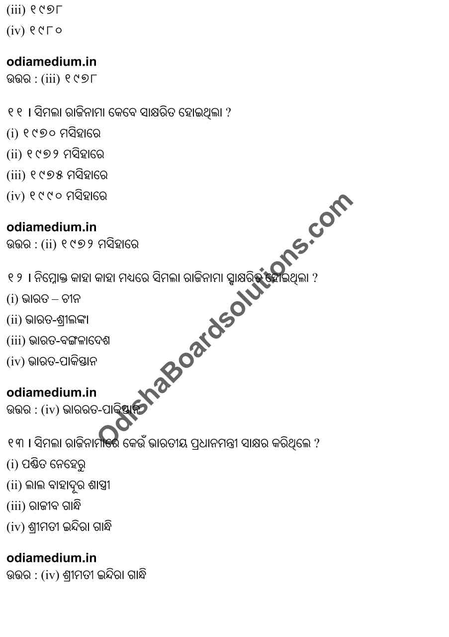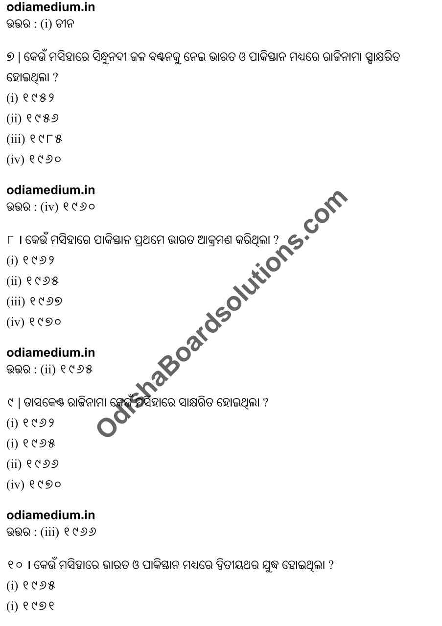 Chse Odisha Class 12 Political Science Chapter 7 Objective Question Answer