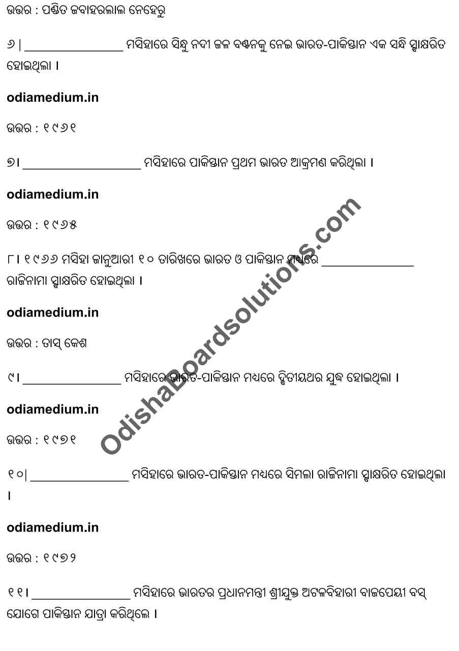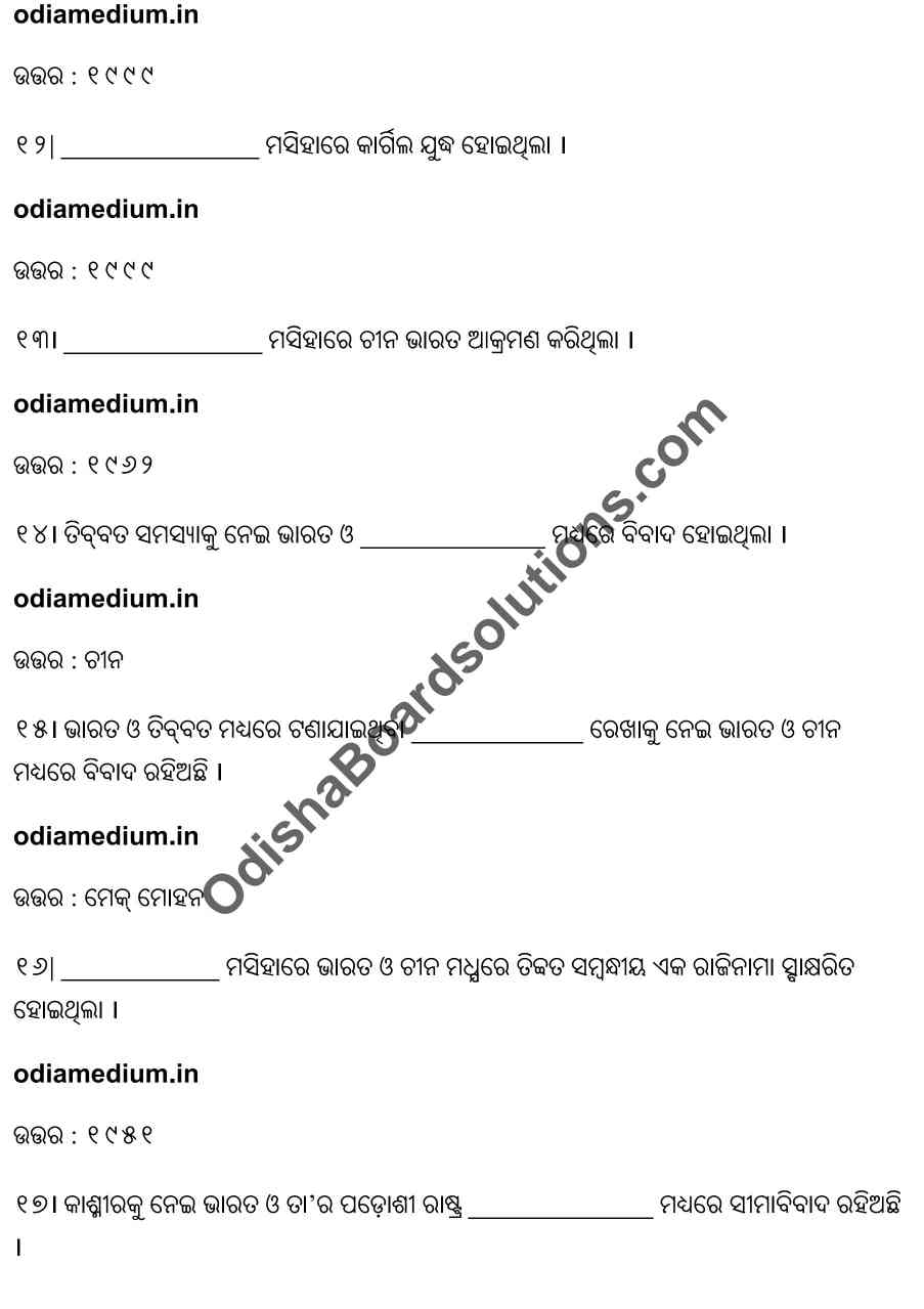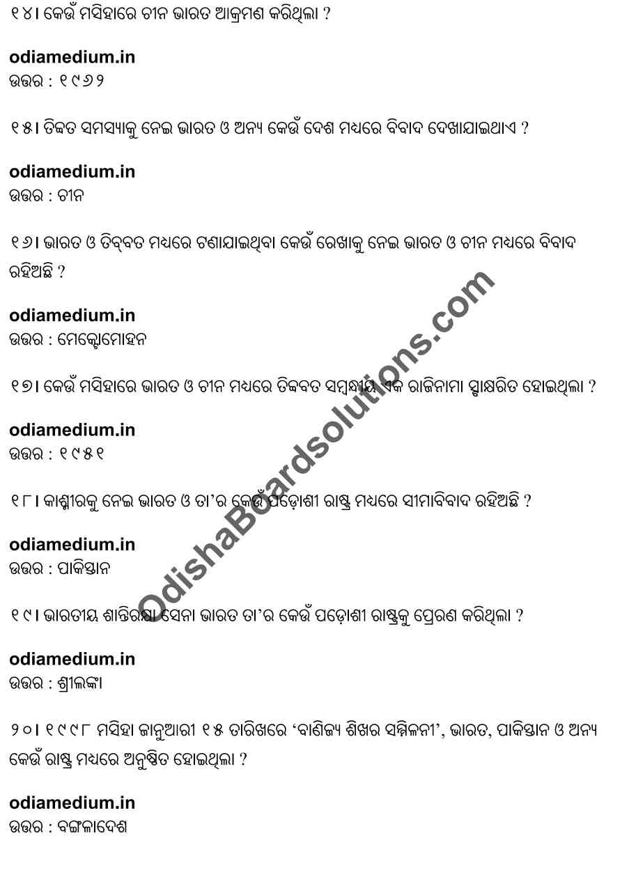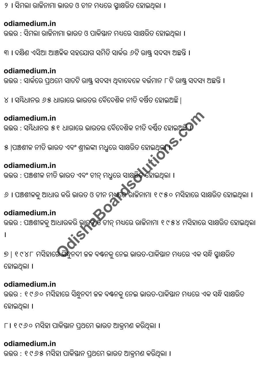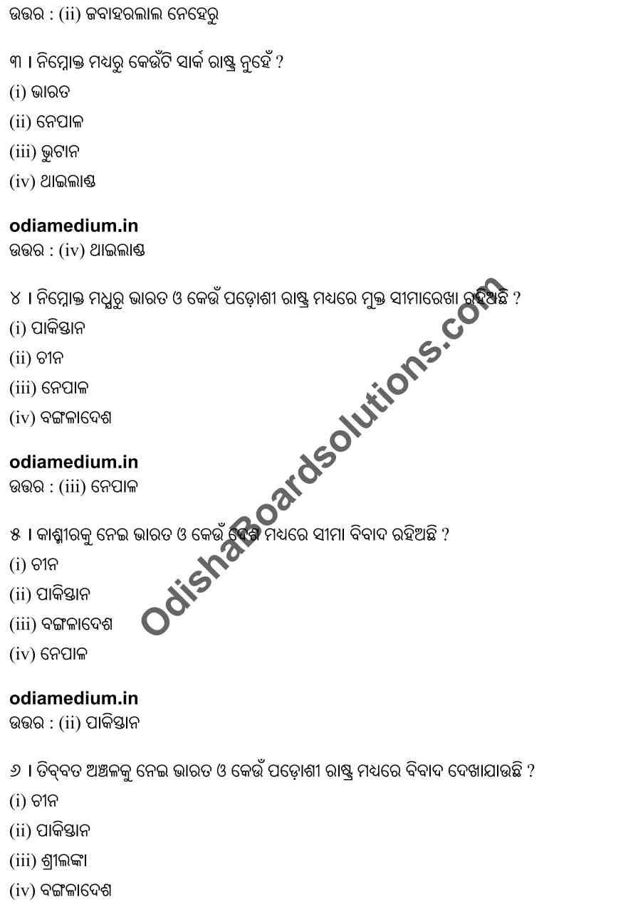 Chse Odisha Class 12 Political Science Chapter 7 Objective Question Answer