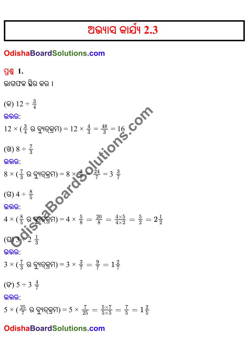 Odisha Board Solutions For Class 7 Maths Chapter 2 Exercise 2.3 August 13, 2024 by admin Odisha Board Solutions For Class 7 Maths Chapter 2 Exercise 2.3