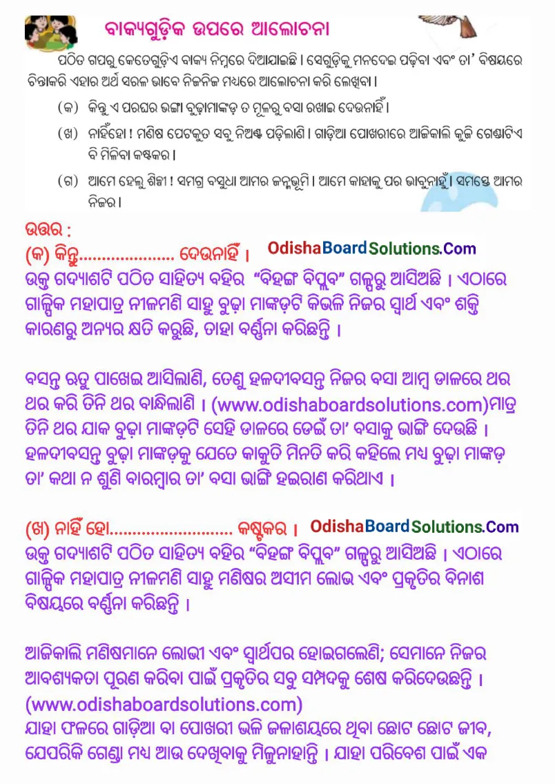 Odisha Board Class 8 Odia Chapter 2 Bihanga Biplaba Question & Answer (Sahitya Surabhi)