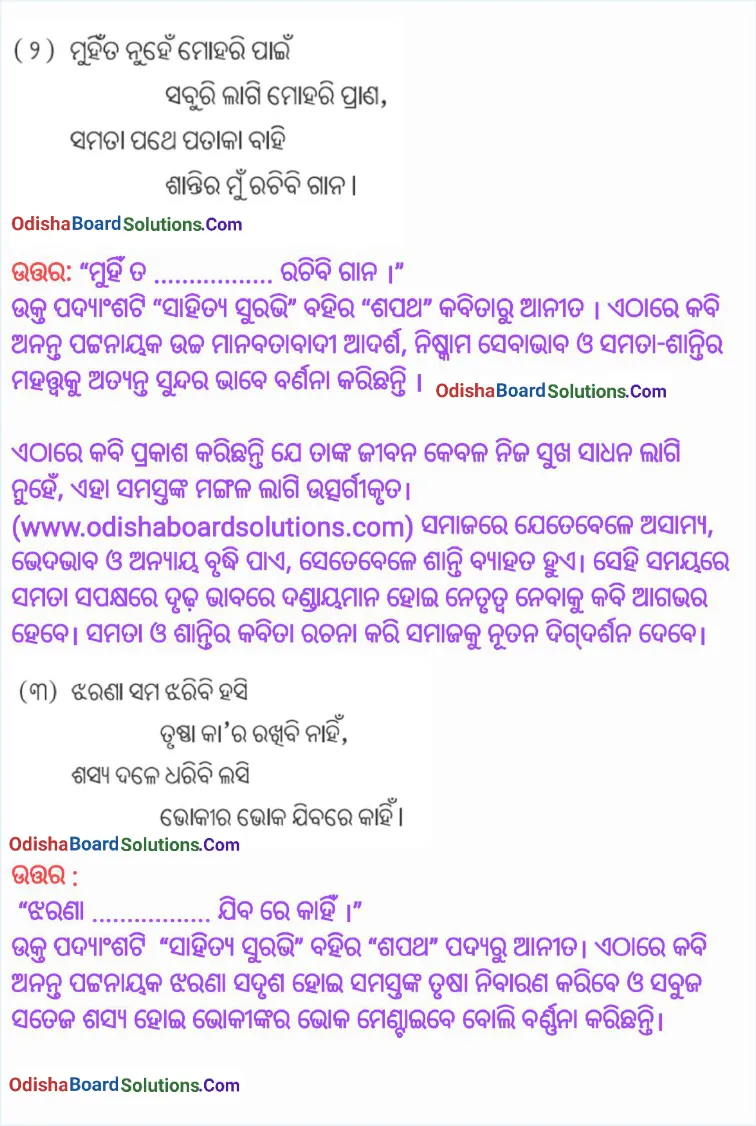 Odisha Board Class 8 Odia Chapter 3 Sapatha Question Answer (Sahitya Surabhi)